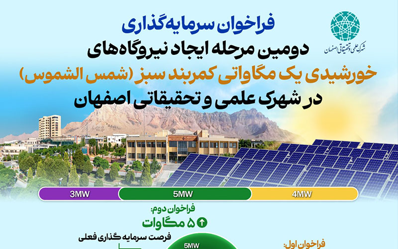 فراخوان سرمایه گذاری دومین مرحله ایجاد نیروگاه های خورشیدی یک مگاواتی کمربند سبز (شمس الشموس) در شهرک علمی و تحقیقاتی اصفهان